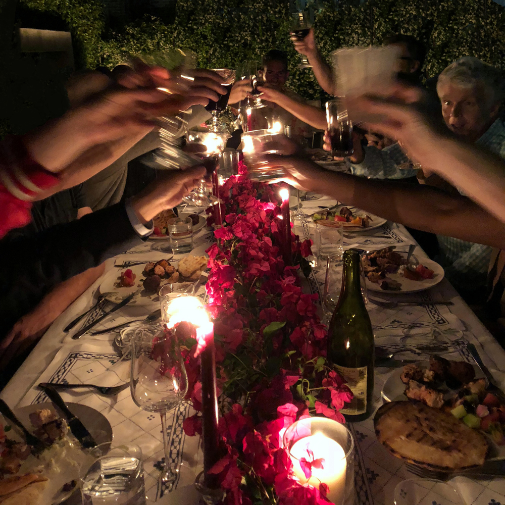 This Greek dinner party was loosely inspired by the colors and flavors of the Adriatic: classic blue and white table linens; a simple, fresh, healthy menu; and a scene-stealing bougainvillea table runner. In a world full of infinite possibilities, picking a loose theme makes decision-making a whole lot easier. It creates a frame within which to lay out your ideas. I hereby welcome you to Greek night!