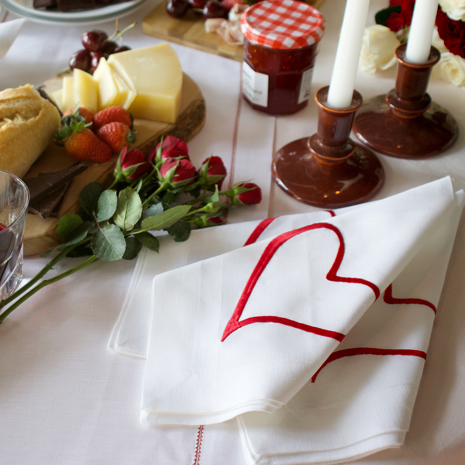 Love Heart Linen Napkin and White Linen Tablecloth