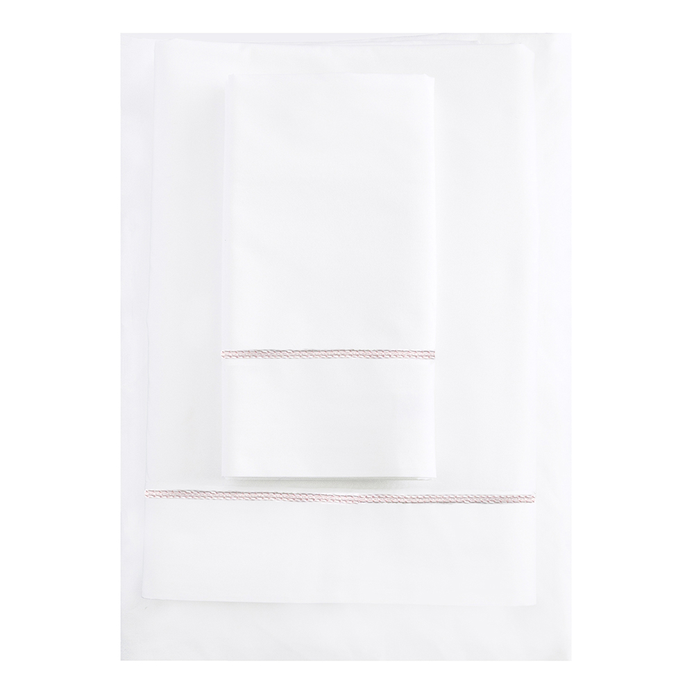 White 500TC Cotton Percale Sheet Set with Pink Hemstitch