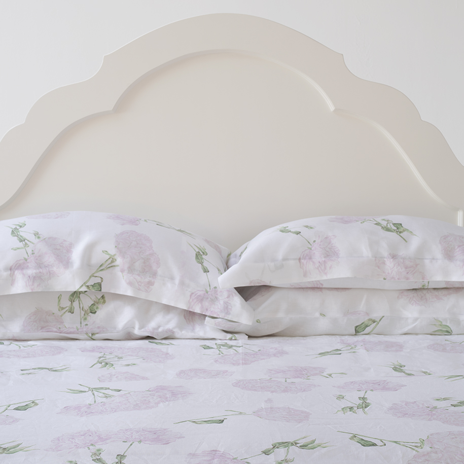 Even when you opt for our classic white, the fabric is such beautiful quality that you are elevated the look and feel of your space. Our finely woven soft, smooth linen or our long-staple 500 thread count cotton percale embellished with a hemstitch both come from heritage Italian fabric mills and are truly exceptional.