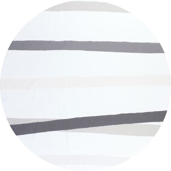 - This white round linen tablecloth features stripes in six shades of grey plus ivory to give a fresh, minimalist, modern look